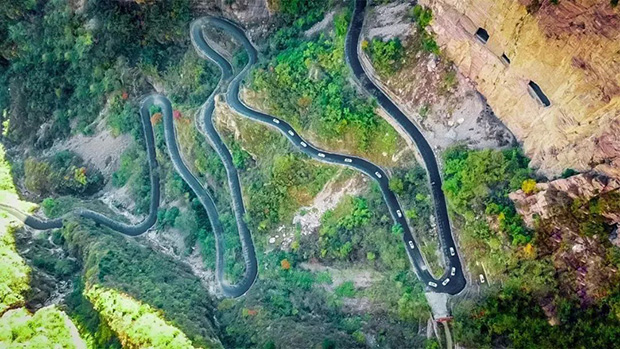 连绵起伏的山脉,巍峨壮丽的绝壁,造就了南太行众多经典的穿越路线。本次穿越,我们将挑战世界五大挂壁公路:这是一条S形的连接回龙村崖上和崖下的挂壁,被誉为”最豪华的挂壁公路“。这是妥妥的河南”秋名山“没有任何一个自驾爱好者,可以心情平静的从这条公路走出来。